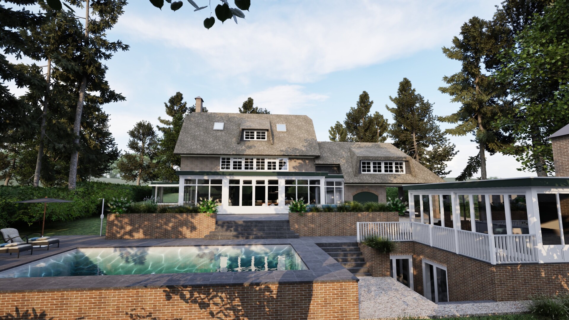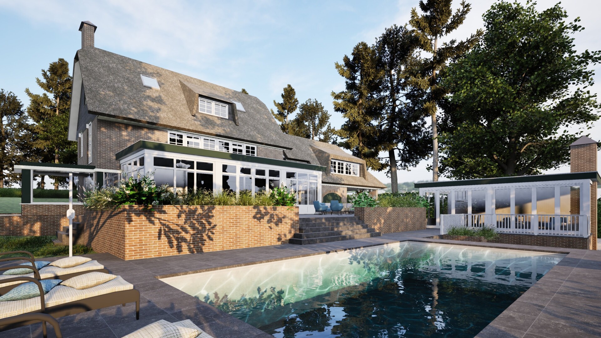 In Oosterbeek realiseren wij een exclusief buitenproject waarin luxe en comfort centraal staan. Het ontwerp omvat een hooggelegen zwembad, een ruime tuinkamer en een functionele kelder, volledig afgestemd op de wensen van de opdrachtgever.